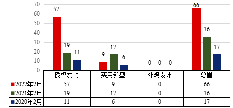 2 20222月云顶国际vip8866授权专利类型分布及近两年同期授权情况