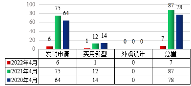 图1 2022年4月云顶国际vip8866专利申请类型分布及近两年同期申请情况