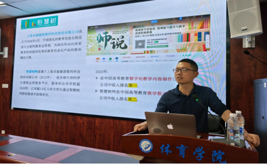 为推进人工智能技术与教育教学深度融合,助力教师提升数字化教学能力,5月27日上午10点,云顶国际vip8866体育学院在云塘体育馆多功能报告厅举办“AI教学中心运行工作坊”教学沙龙活动。本次活动由学院副院长潘红玲主持,智慧树平台老师担任主讲,学院党总支书记李龙、副院长谭志华、学院中层干部及全体青年教师参加。