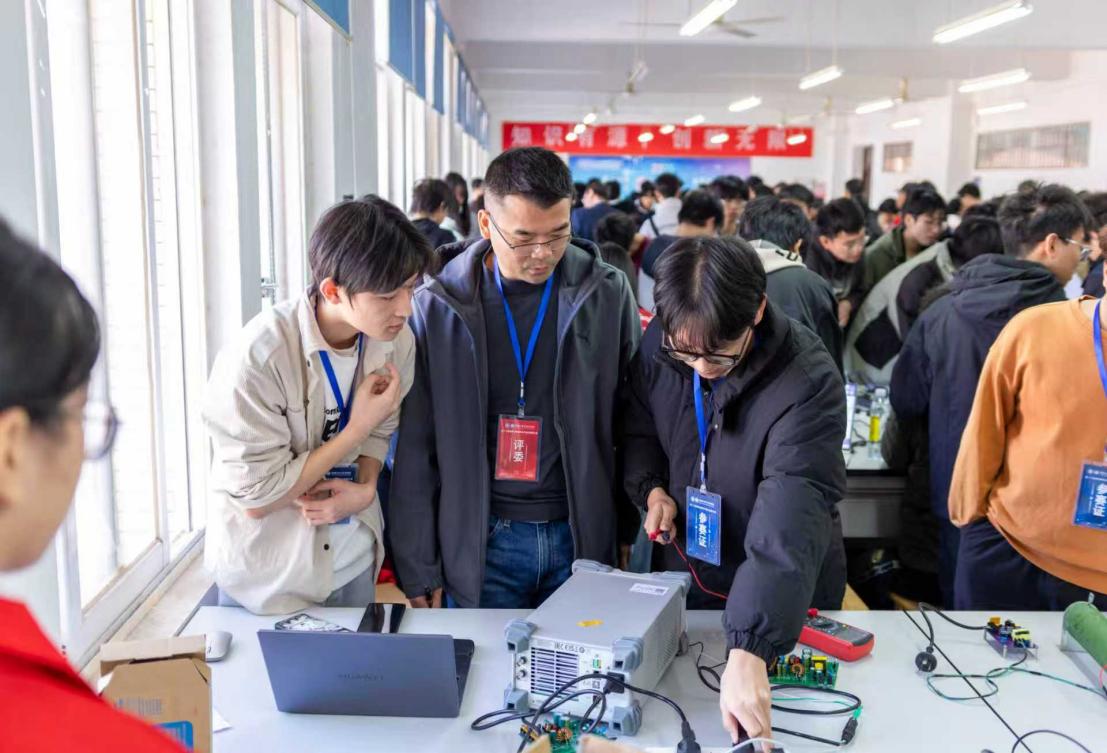 开幕式后,各参赛队伍在理科楼C403依次展示作品,并就项目创新点、技术原理及应用前景等方面现场进行阐述答辩。从智能硬件到嵌入式系统,从物联网应用到人工智能算法,参赛作品涵盖多个前沿领域,充分展现了长理学子在电子设计领域的扎实功底与创新潜力。最终,经过评审委员会评定,本届大赛自主命题组共诞生14个奖项,企业组斩获9个奖项。其中,人工智能学院李博团队“户外自主导航 3D 建图机器人”、机械与运载工程学院陈泽宇团队“激光雕刻机”拿下自主命题组特等奖;我院邓志燊团队以LM25145同步降压电路、同步整流电路和工频变压器为核心的24V3A ACDCDC电源获得企业命题一等奖。