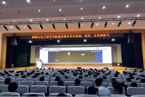 10月19日下午2:30,我院2021-2022学年第一学期通识教育学术讲座开讲,首讲关注“大学生责任、义务和担当”。本次讲座由云顶国际vip8866教学名师,湖南省电子学会副理事长,湖南省物理学会常务理事、光学学会常务理事、中国电子教育学会研究生教育分会理事唐立军教授主讲,共有500余名同学聆听此次讲座。