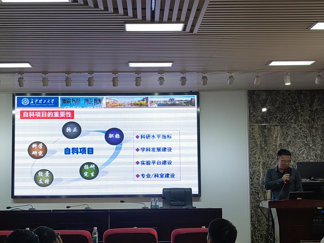 卿教授从基金项目的重要性、自然科学基金架构、自然科学基金项目选题以及自然科学基金项目申报书撰写四个方面展开讲解,结合自己的申报经验重点归纳总结了选题及撰写的方向和方法,并指出了大部分青年教师在撰写时的误区同时提供建议。参会教师们认真听讲,受益匪浅,在会议结尾时老师们纷纷提问,卿教授和刘斯副院长都进行了耐心解答,会议在大家热烈的讨论下圆满结束。