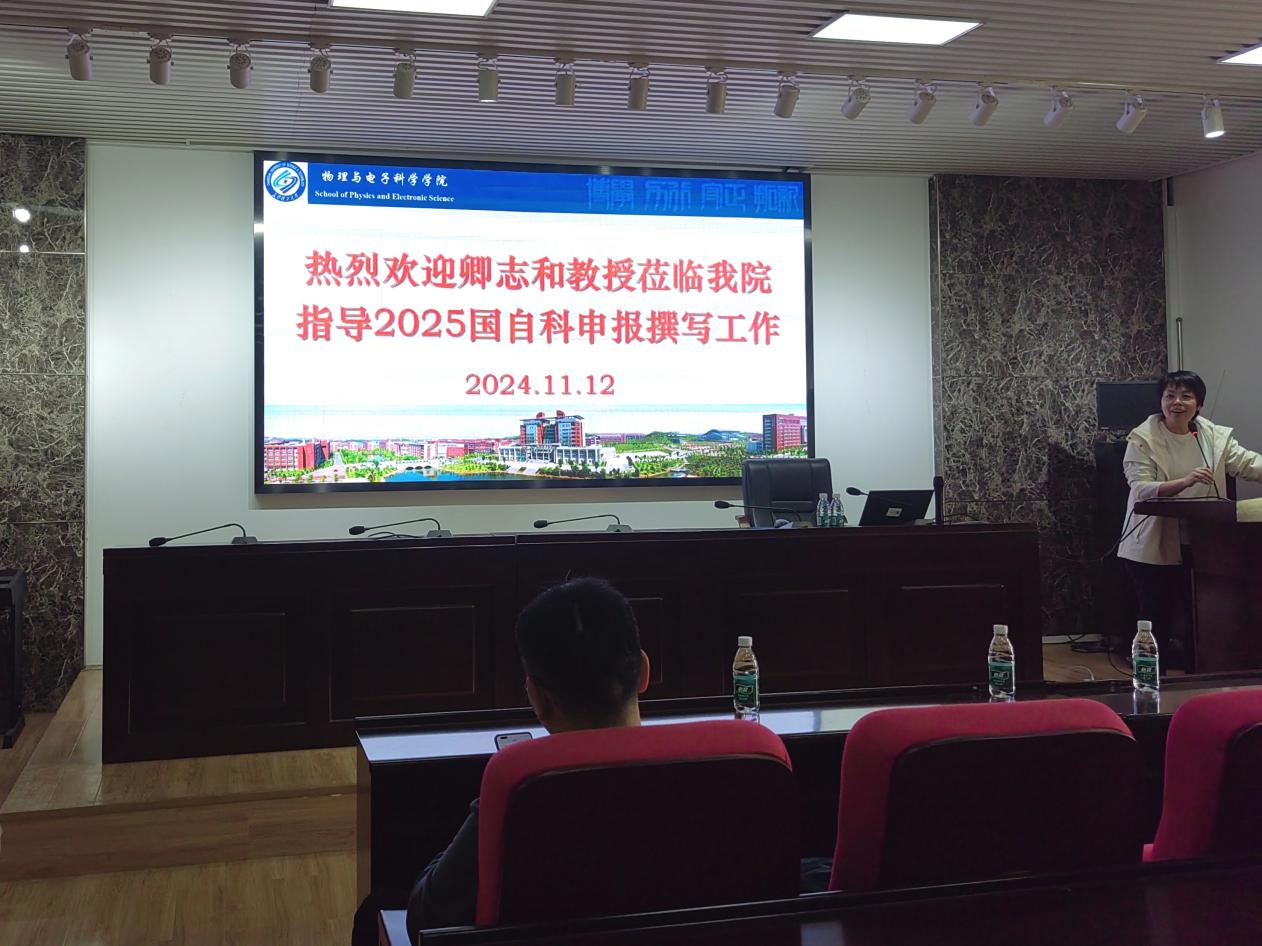 2024年11月12日下午,云顶国际vip8866科技处副处长、化学化工学院卿志和教授应邀来我院指导2025年国自科申报撰写工作,做了名为《自然科学基金项目申报及申请书撰写》的讲座。讲座在理科楼B413会议室进行,学院国自科基金申报人40余人参加,刘斯副院长主持会议。