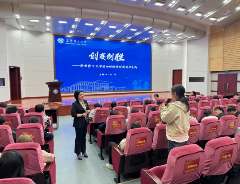 互动答疑环节,王华对同学们提出的“备赛周期如何规划”、“技术转化难怎么办”等困惑逐一解答,提出“学校+学生”协同发力的创新创业培育思路:学校要筑牢政策引导、平台支撑、项目储备“三大基石”,学生则要锚定明确市场路径、攻克核心技术、打造过硬团队“三个关键”。“创赛评审最看重落地性,不能只停留在创意层面,要拿出‘能做成的底气’和‘能做好的实力’。”她的恳切建议让在场学子深受启发。