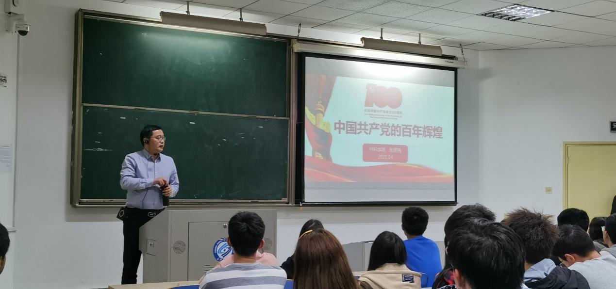 开班仪式结束后,分党校进行了以“中国共产党的百年辉煌”为主题的入党积极分子第一次培训,主讲老师为材料学院党委书记张国强。