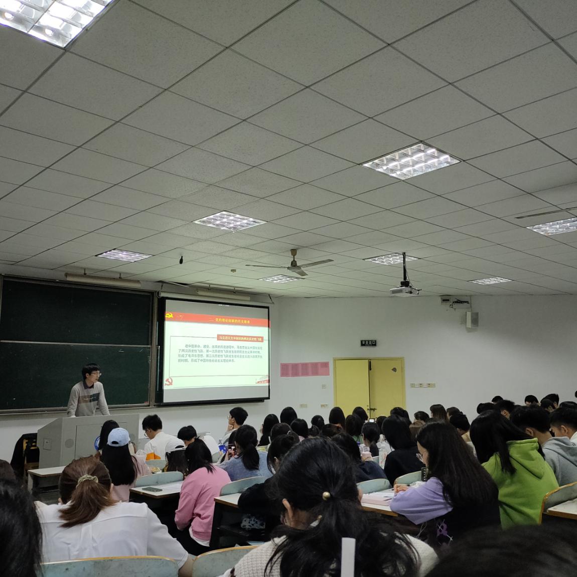 4月29日晚19时30分,由物电学院、文新院及法学院分党校共同举办,王威峰老师主讲的“与时俱进不断推进实践基础上的党课的理论创新”党课课程在金盆岭校区6教110开展。