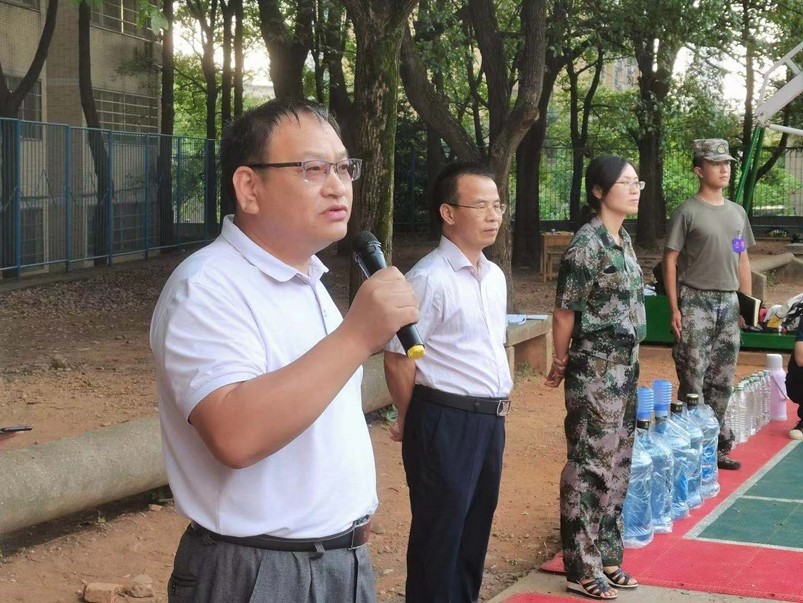 唐书记详细了解同学们军训的生活状态,军训的进度、国防教育等工作开展情况,并感谢教官们的辛勤付出。在讲话中肯定了同学们不怕苦、不怕累的精神,提出在安全的前提下,进一步巩固和提升军训成果,希望大家能够圆满地上好军训这第一堂课,以更好的状态投入到接下来的大学生活。