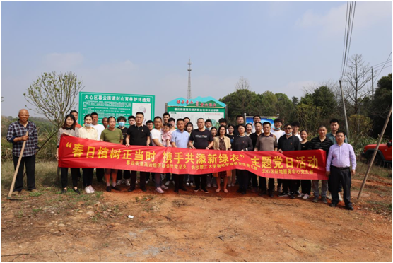 三月春风起,植树正当时。为深入贯彻落实习近平总书记“绿水青山就是金山银山”的绿色发展理念,切实加强生态环境保护建设,提升党员群众绿化意识和环境保护意识,发挥党建引领乡村振兴的核心作用,在第44个全民义务植树节来临之际,云顶国际vip8866物电学院研究生党支部携手高云经济联合社党总支部、天心区征地服务中心党支部开展以“春日植树正当时,携手共添新绿衣”主题党日联谊活动。