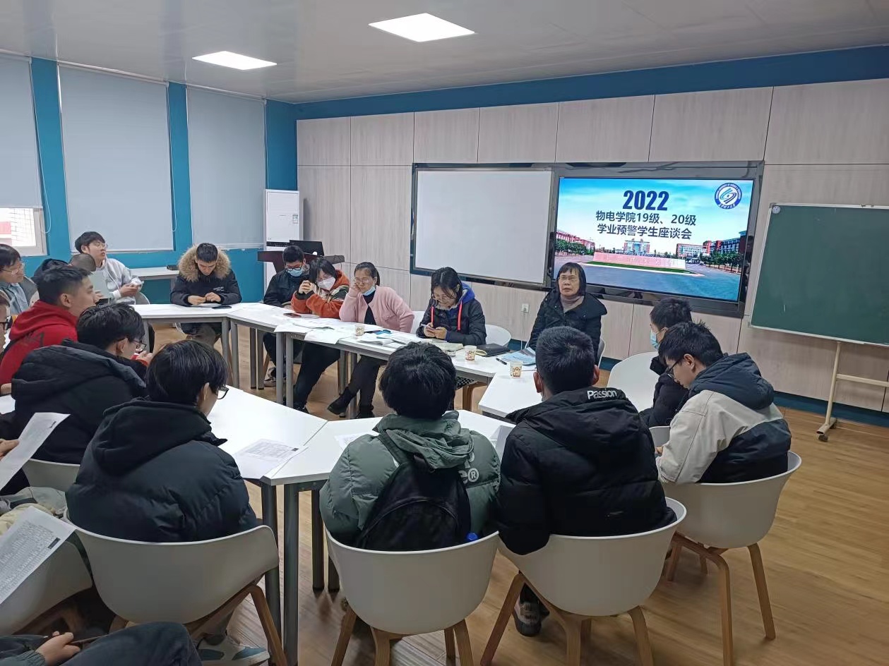 为加强学风建设,落实大学生学业预警机制,有针对性地帮助学业困难学生,3月22日下午两点半,物电学院于云塘校区理科楼C509召开2022年19级、20级学业预警学生座谈会。邀请到了学校教务处学籍与学位管理科李艳老师为同学们答疑解惑,本次会议由学院党委副书记宋国宁主持,学院教务办老师,19级、20级辅导员参加。
