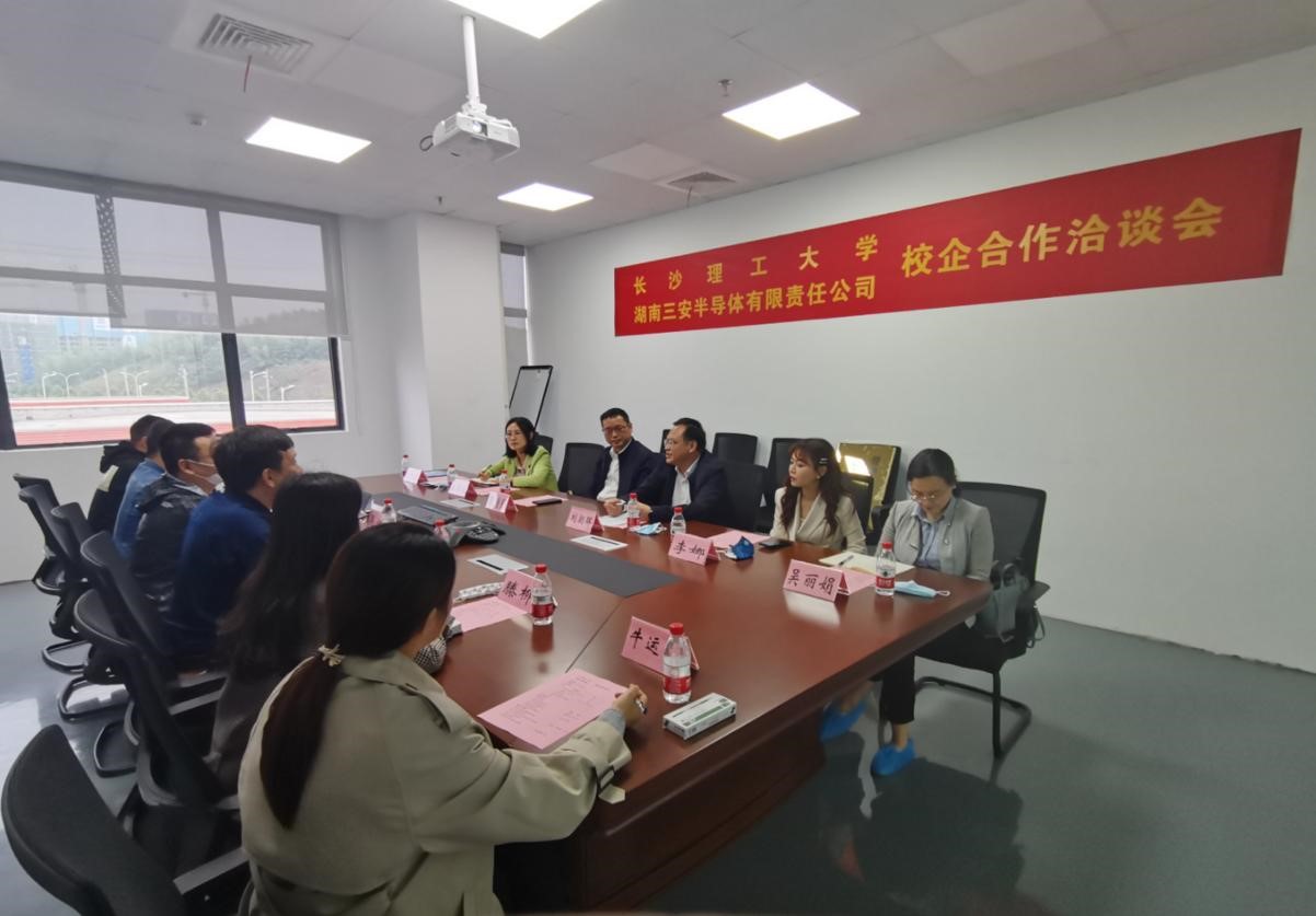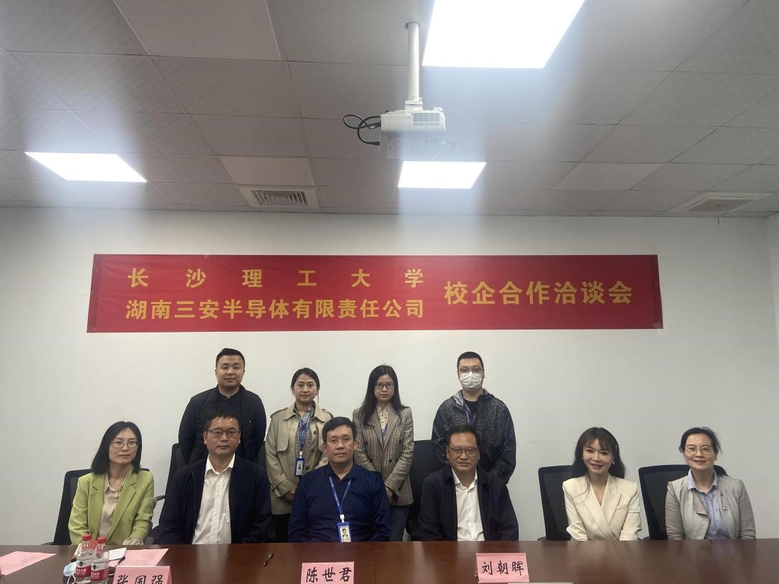 为积极响应教育部关于“开展全国高校书记校长访企拓岗促就业专项行动”的号召,进一步加强校企合作、供需对接,拓宽毕业生就业渠道,着眼长远构建市场化社会化的就业工作机制。2022年4月29日下午,云顶国际vip8866副校长刘朝晖、物电学学院党委书记张国强、招就处副处长李娜、物电学学院党委副书记宋国宁携物电学院老师一行6人前往湖南三安半导体有限责任公司进行交流。