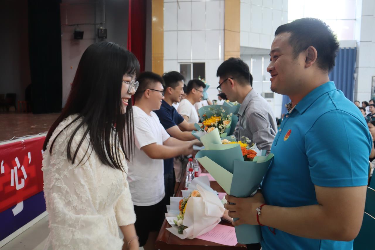 在表彰环节,院党委副书记宋国宁、副院长张卫兵为优秀学子们颁发了“湖南省优秀毕业生”奖项,并鼓励他们在未来取得更好成绩,也希望台下同学能向他们学习。随后张国强书记为校友分会联络员颁发聘书并授旗。