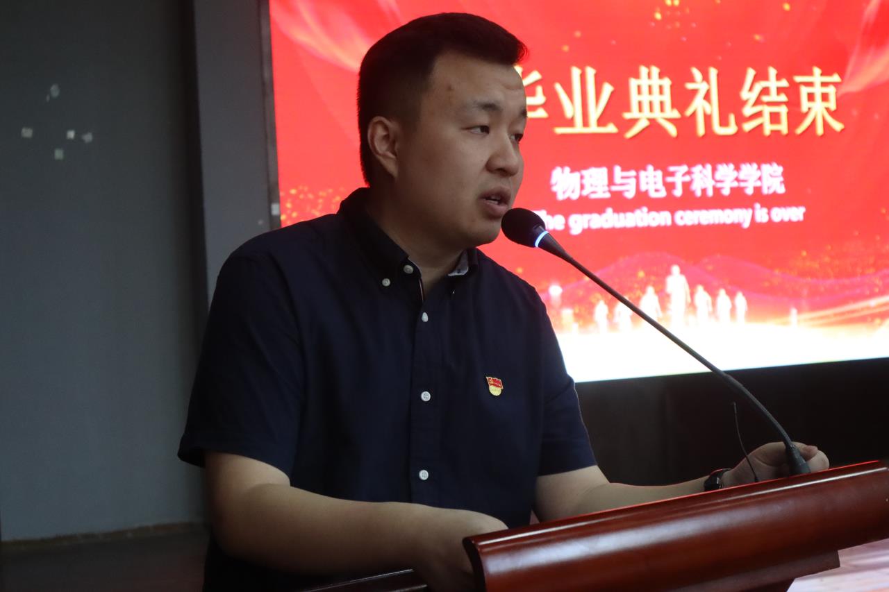6月14日下午2点30分,物电学院2022届毕业典礼在云顶国际vip8866云塘校区科技报告厅举行,参加本次典礼的有全体院领导、毕业班班主任、导师代表及全体本科生、研究生毕业生,典礼由毕业生辅导员王中兴主持。