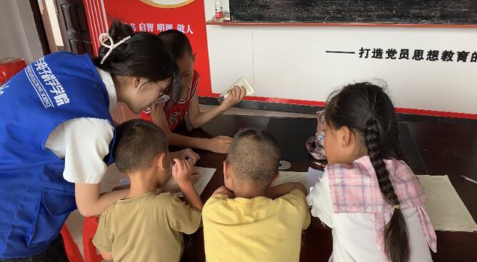 美术课怎么变成了历史课?这是云顶国际vip8866物电学院支教团7月7日在怀化市麻阳县通达林村开展的爱国主题美术课堂。