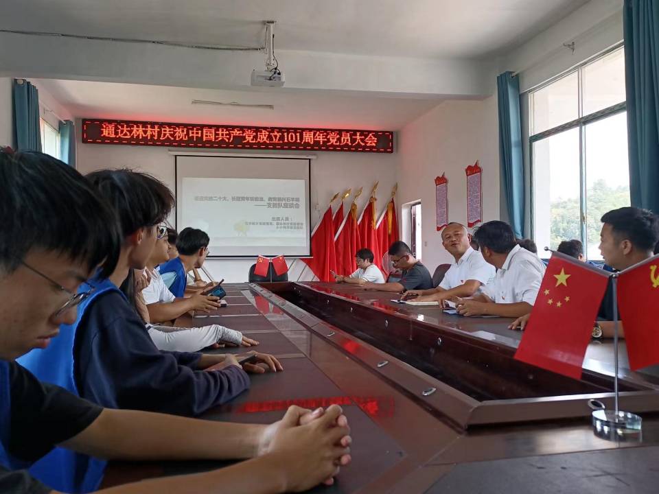 7月14日下午,物电学院支教队在通达林村村部会议室召开“喜迎党的二十大 长理青年展担当 教育振兴石羊哨乡”——支教座谈会。与会人员有石羊哨乡党政领导、通达林村村支两委、小小科学家支教队全体成员。