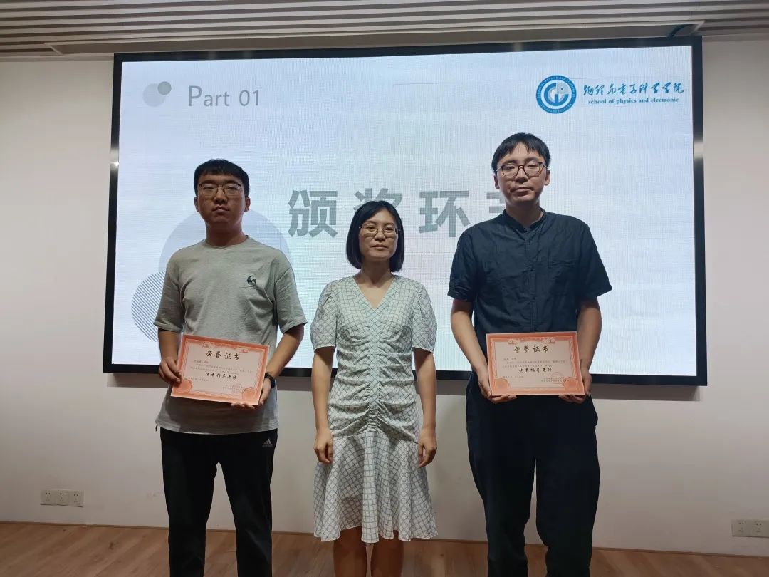 首先,第一个是颁奖环节,党委副书记宋国宁老师为此次暑期“三下乡”活动中表现优秀的老师和学生颁发相关荣誉证书。