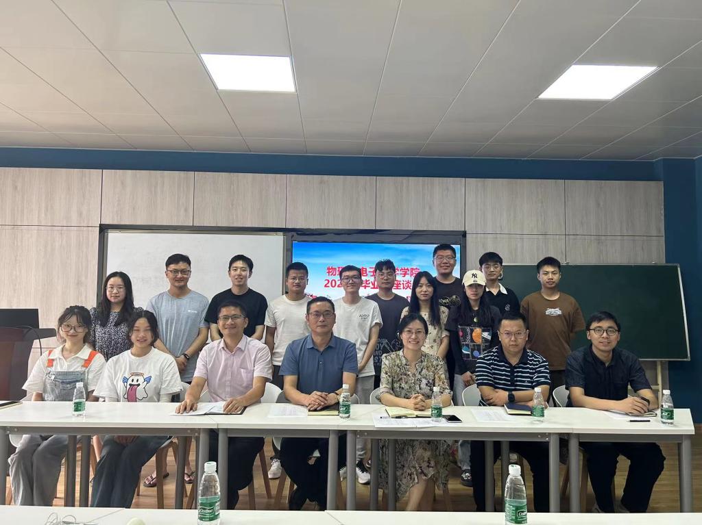 6月16日上午10:00,物电学院2023届毕业生代表座谈会在理科楼C509举行,院党委书记张国强、副院长(主持工作)张卫兵、党委副书记宋国宁、副院长范志强以及来自不同专业班级的13名本科生、研究生毕业生代表参加座谈会,会议由宋书记主持。