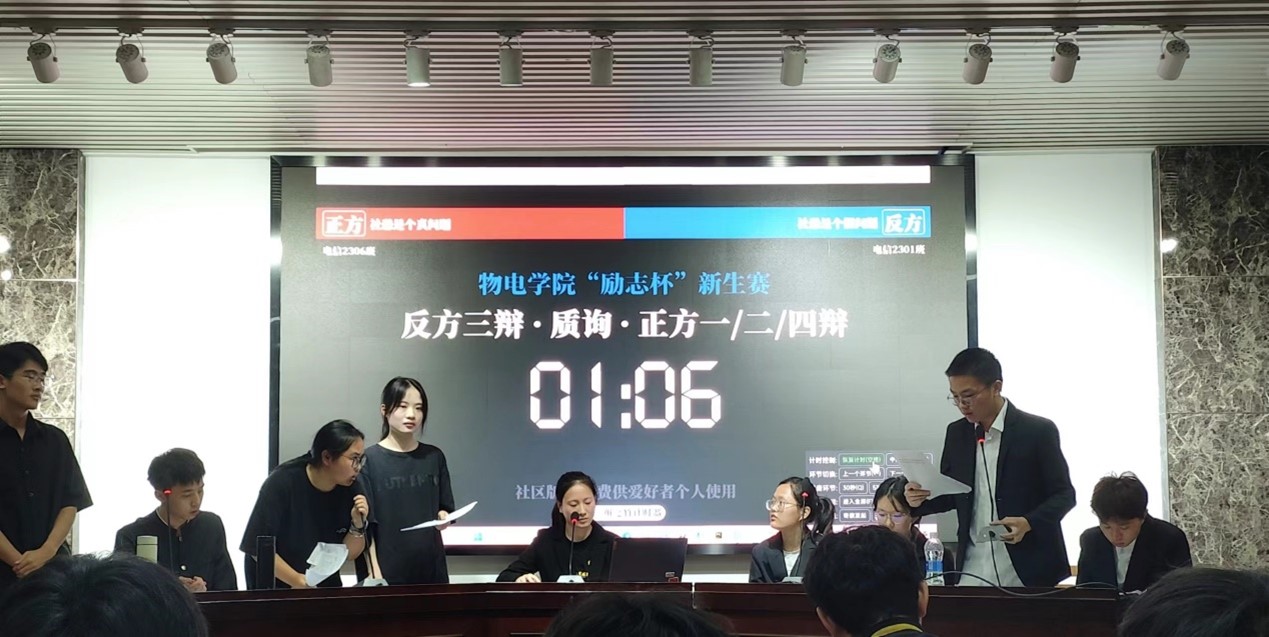 2024 年 5 月 10 日,物电学院第十四届“励志杯”新生辩论赛决赛完美收官。此次辩论赛的辩题为“社恐是否是个真问题”,双方辩手就此展开激烈讨论。参加此次辩论赛的评委有孙文超学长、朱妍洁学姐、石子涵学长,同时姚巍老师作为嘉宾出席活动,并预祝辩论赛顺利进行。