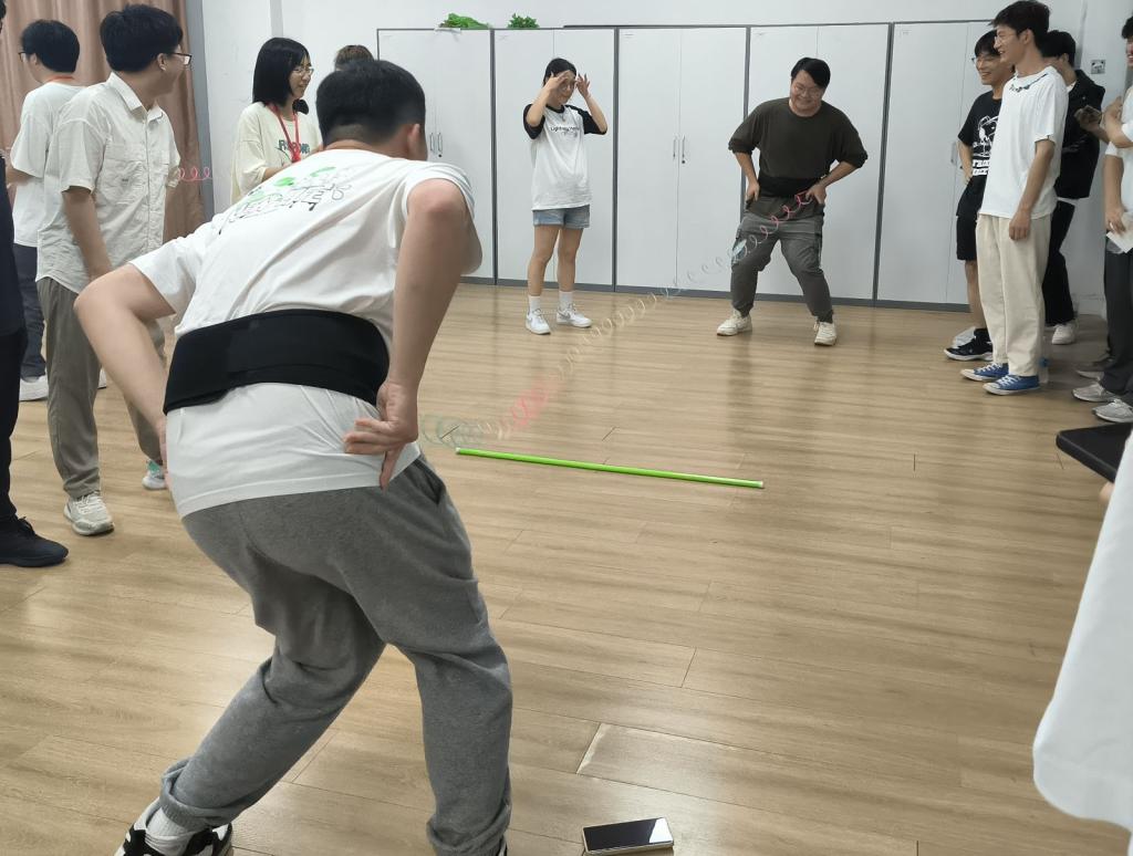 活动开始,主持宣布分组结果,发放活动贴纸与签到卡,小组内选出组长并简单了解后,开始游戏。在这过程中有许多有意思的活动,例如抢凳子,光盘拔河,神笔马良等…。廖运康同学所率领的小组获得了积分第一的成绩,获得了物电之光文创笔记本、钥匙扣等精美小礼品。