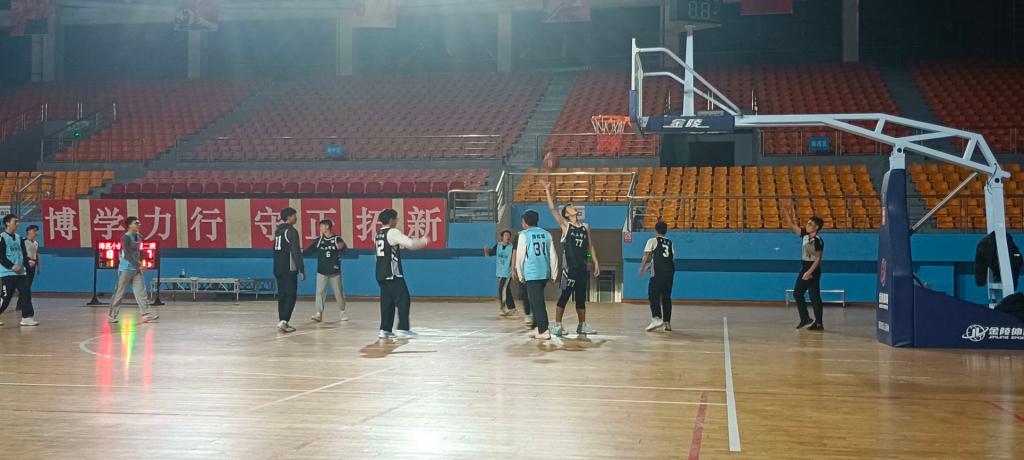 本次篮球赛决赛吸引了众多大一学子的积极参与,他们以饱满的热情投入到观看比赛中。在激烈的赛场上,同学们展现了出色的篮球技艺和团队合作精神。比赛中,球员们精准的投篮、灵活的运球和紧密的配合,赢得了观众们的阵阵掌声。