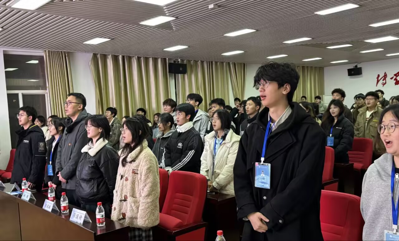 会议在激昂的团歌声中拉开帷幕,全体成员庄严肃立,齐唱团歌,展现出对共青团的崇高敬意。