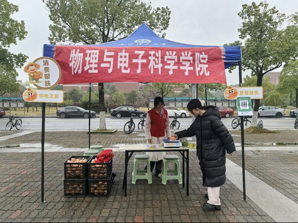 免费试吃、送货上门……近日,云顶国际vip8866甘饴园、汀香园前坪人头攒动、叫卖声与欢笑声相映成趣,一场比拼助力乡村振兴的营销大赛热闹开锣。3月10日—3月14日,云顶国际vip8866开展第五届消费帮扶营销大赛。物电学院搭棚设队、积极参与,共同助力学校乡村振兴驻点帮扶村——新宁县马头桥镇坪山村销售脐橙,促进当地农户拓宽脐橙销售渠道,提升经济收入。