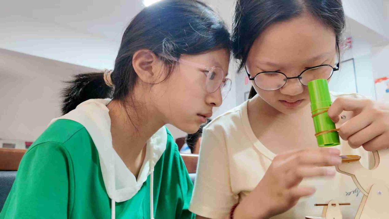 这堂看得见摸得着的显微镜实验课经过志愿者们反复确认选择了牛皮纸筒、凸透镜片、简易调焦旋钮等材料,每一套材料都经他们亲手打磨,棱角圆润。正是这些成本较低,凝聚着掌心汗水的零件让高深的科学原理走到孩子们的身边,成为打开微观宇宙的钥匙,更将好奇与探索的种子深植于孩子们心田。“小小科学家”科普志愿队用行动证明,新时代青年助力乡村、点亮未来的使命担当,可以如此具体而微,又如此光芒万丈。