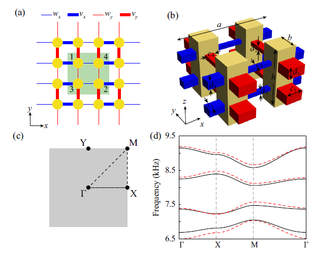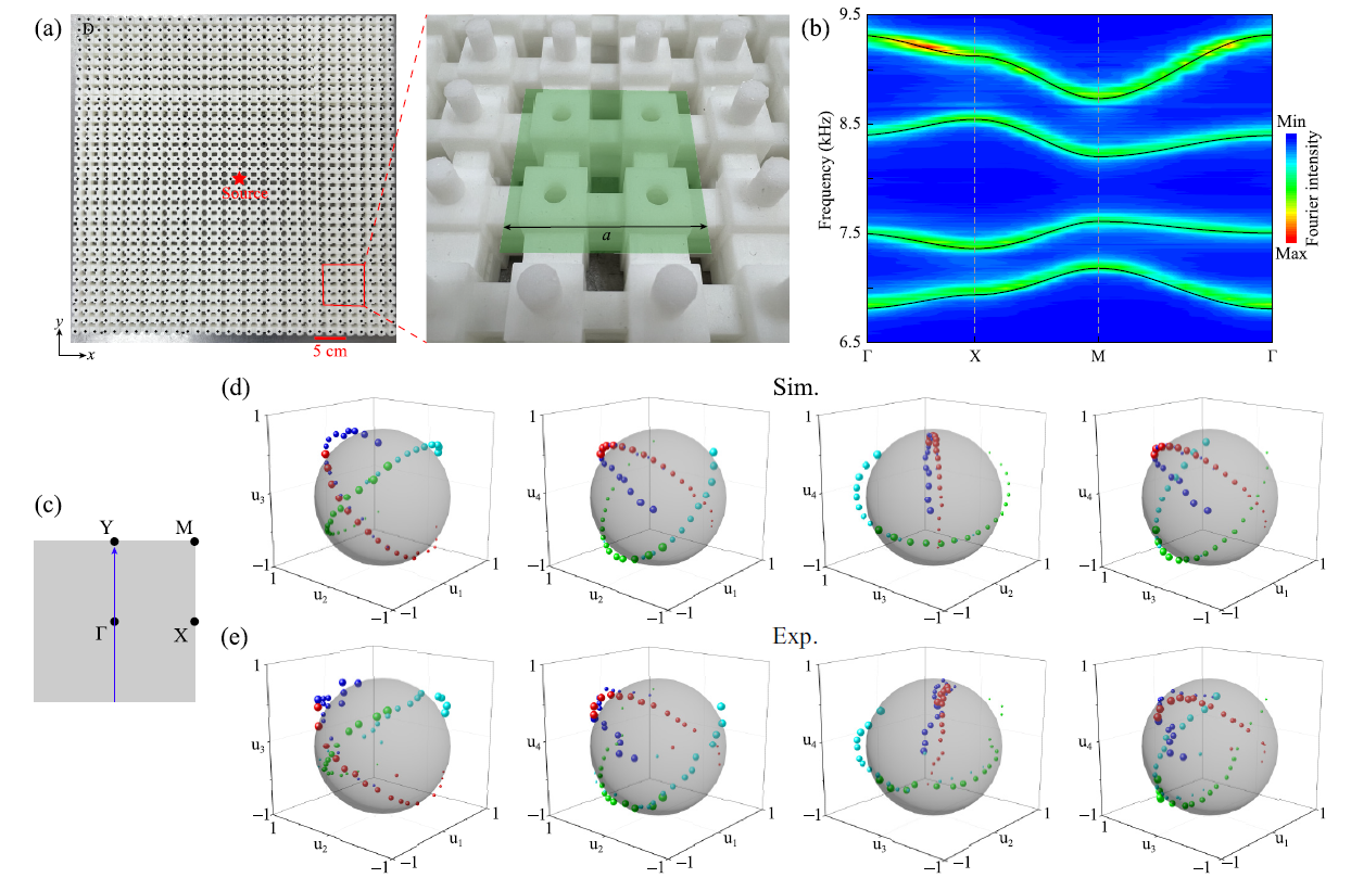 图1. 声学高阶非阿贝尔拓扑绝缘体及能带结构.