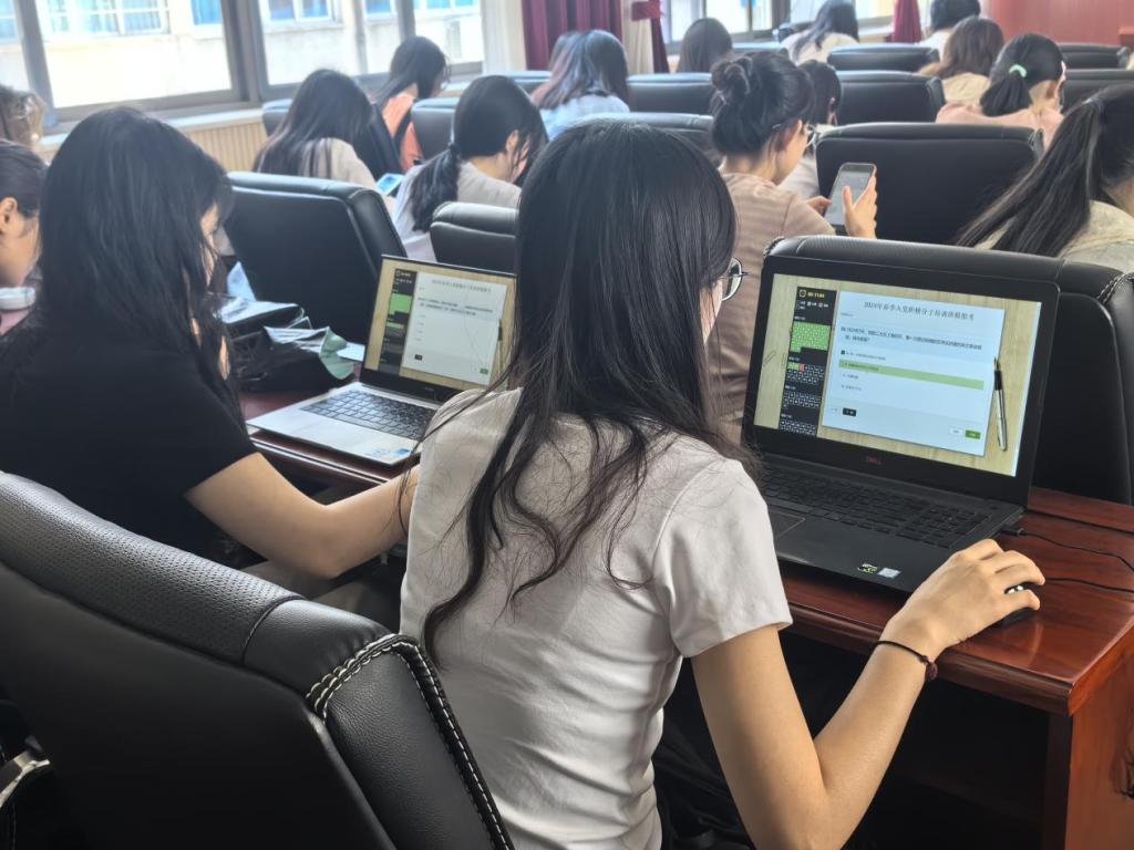 党建引领,科技助力。本次考试采用线上答题,随机组卷的模式。正式开考前,学生党总支副书记陈鑫宇老师强调考试相关注意事项,朗读考生准则并严肃考场纪律。正式开考后,考生认真答题;考试进行中,监考员维持考场秩序、确保考试公平。1310分考试结束,考生停止作答并有序离场。