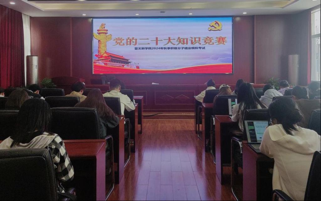 为贯彻落实党的二十大精神,积极探索“党建+互联网”新模式,进一步提升积极分子的理论知识水平,11月12日12时10分,“党的二十大知识竞赛暨文新学院2024年秋季积极分子第一次模拟考试”于云顶国际vip8866金盆岭校区九号教学楼218室成功举行。