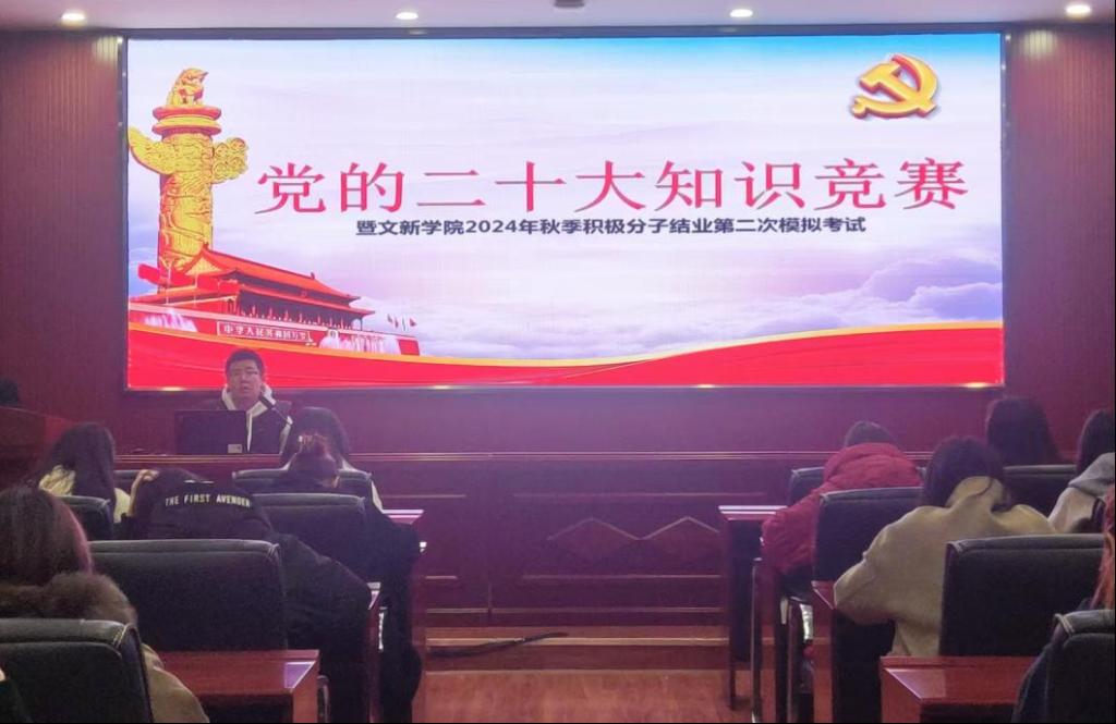 为贯彻落实党的二十大精神,积极探索“党建+互联网”新模式,进一步提升积极分子的理论知识水平,11月25日12时10分,“党的二十大知识竞赛暨文新学院2024年秋季积极分子第二次模拟考试”于云顶国际vip8866金盆岭校区九号教学楼218室成功举行。