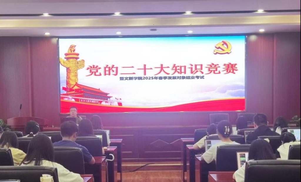 为贯彻落实党的二十大精神,积极探索“党建+互联网”新模式,进一步提升发展对象的理论知识水平,5月22日12时10分,“党的二十大知识竞赛暨文新学院2025年春季发展对象结业考试”于云顶国际vip8866金盆岭校区九号教学楼218室成功举行。