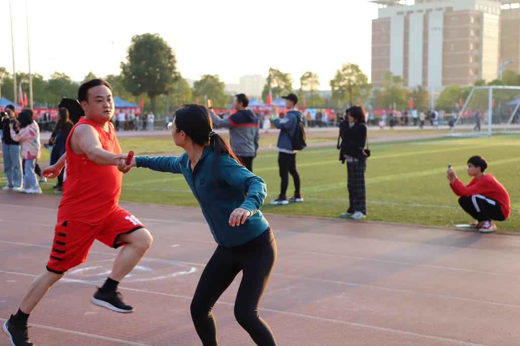 12日的教工比赛充分展现了文新系教工积极向上、团结奋发的风采,赛场上捷报频传。在4×100米接力赛中,我系魏桃初、王雨佳、陈聆希、吴梦园四位老师团结一致、顽强拼搏,获得了决赛第三名的好成绩;汤路老师一鸣惊人,连续斩获女子甲组100米赛跑第一名与女子甲组跳远第一名;在实心球、异程接力等项目中,我系也取得了不错的成绩。