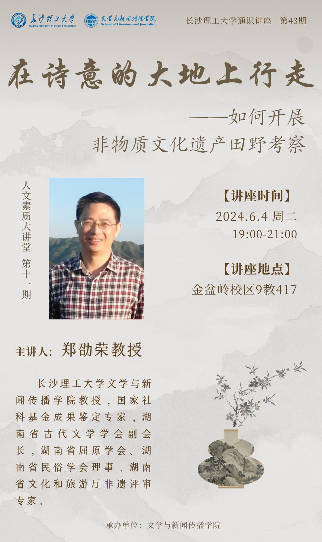 人文素质大讲堂暨通识讲座预告:郑劭荣教授:在诗意的大地上行走:如何开展非物质文化遗产田野考察