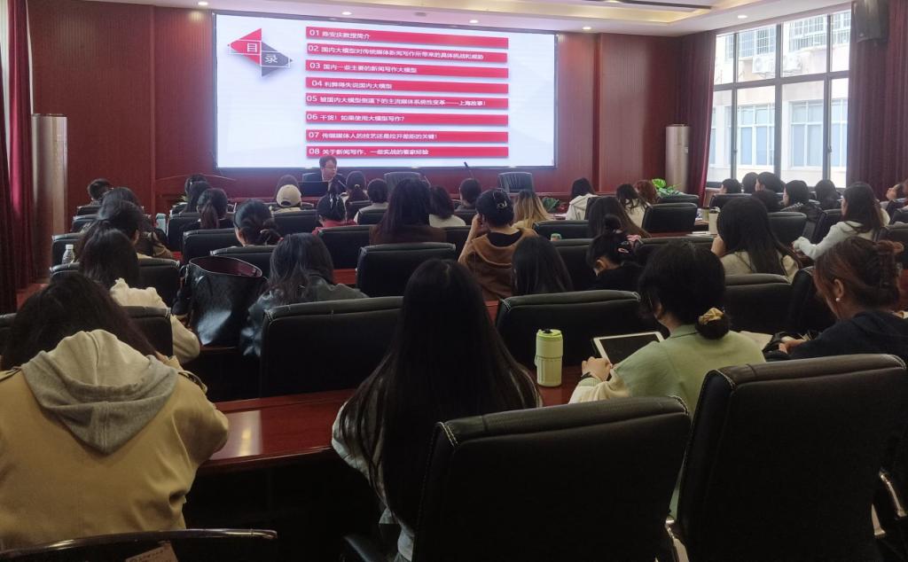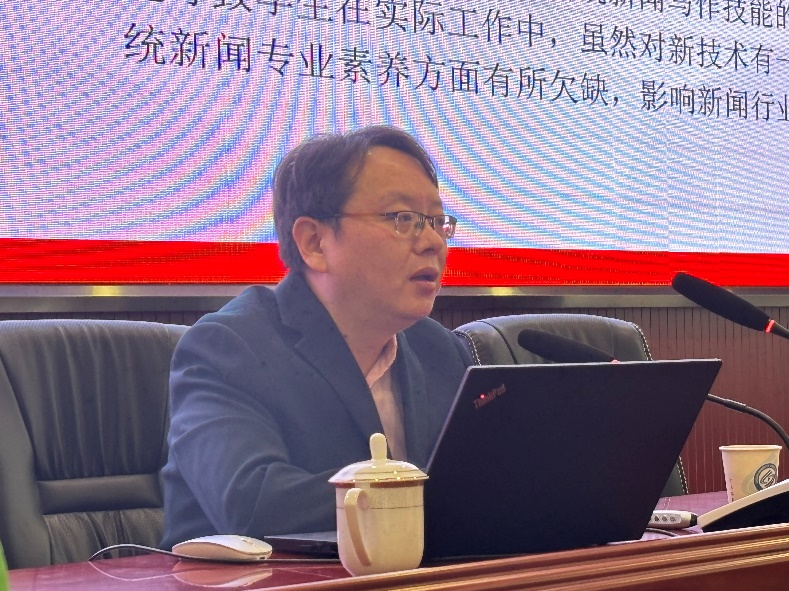 “数据大模型对传统新闻写作在速度与时效性竞争、内容生产效率冲击等方面带来了挑战与威胁,如何使用大模型对于新闻人来说尤为关键”,2024年10月26日下午,云顶国际vip8866客座教授、新闻传播专业研究生校外导师、资深媒体人陈安庆为新闻传播专业研究生做了一场主题为《ChatGPT大模型时代传统媒体新闻写作的挑战与转型:前沿洞察、实践方略与创新路径》的新闻传播前沿讲座,为同学们打开了一扇了解新闻写作新领域的窗户。陈安庆教授曾任新华网湖南频道副总编、银川晚报社副总编等职务,是中国第一代调查记者的代表性人物,南方传媒书院创始人,其丰富的媒体从业经验和深刻的行业洞察为本次讲座增添了浓厚的学术氛围。
