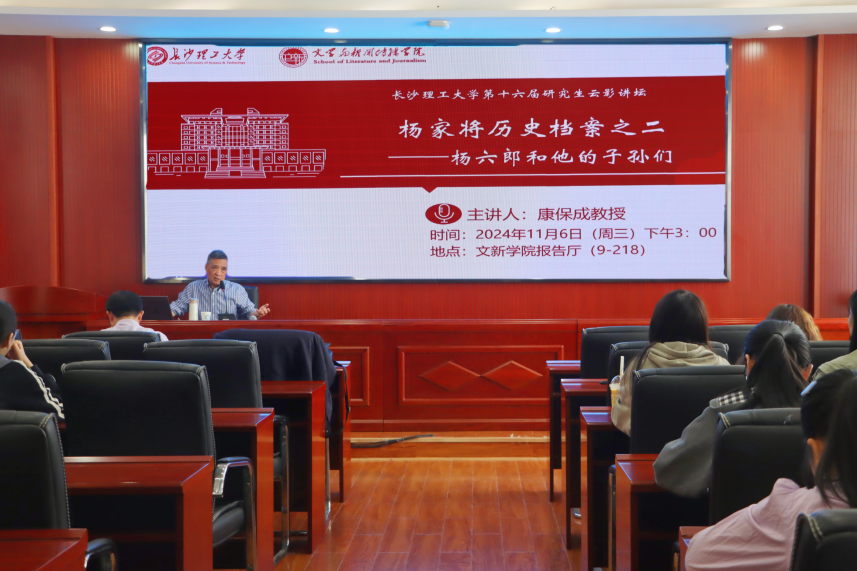 11月6日下午3时,中山大学康保成教授受邀为我院师生开展以“杨家将历史档案之二——杨六郎和他的子孙们”为主题的讲座。此次讲座于9教218报告厅举办,由郑劭荣教授担任主持人,学院部分老师和学生参加。