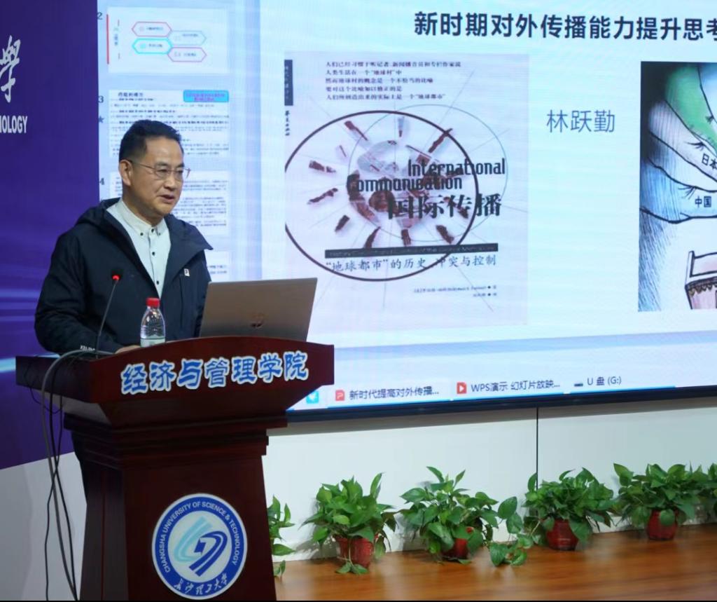 紧接着,林教授结合西方国家提出的“中国威胁论”“中国崩溃论”等案例分析了对外传播能力体系在外部环境中所遇到的挑战。并且深入剖析了我国国际传播体制所存在的缺陷,然后对思维意识、传播渠道、传播内容等方面面临的挑战与困境做了系统阐释。最后,林教授提到“要着力打造中国自己的具有竞争力的传播‘航空母舰’”。并特别强调了打造多元化国际传播主体队伍在对外传播策略中的重要性。