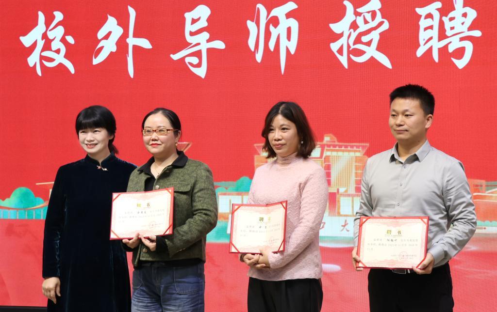 随后,举行校外导师聘任仪式,蒋璟萍为阳锡叶、俞慧友和余蓉颁发聘书。