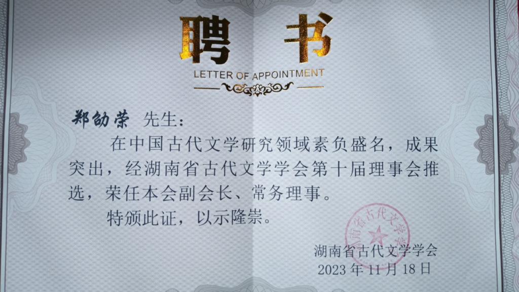 我院郑劭荣教授当选湖南省古代文学学会第十届理事会副会长、常务理事。
