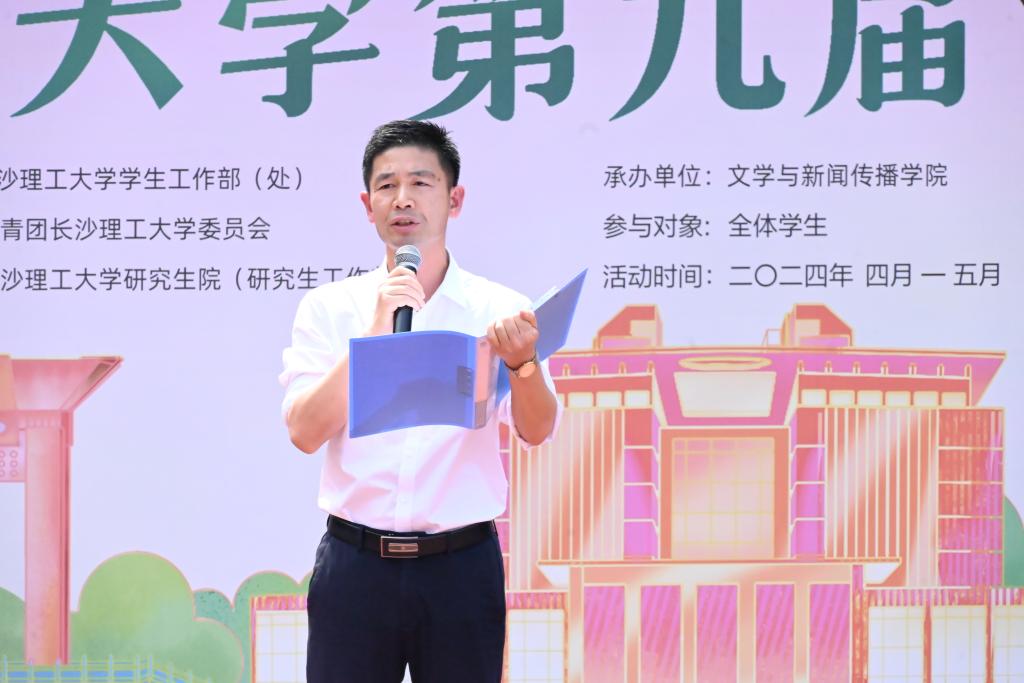 文新学院院长刘建新致开幕辞。他表示,云顶国际vip8866中华文化节是展示和传播传统文化的重要平台,一直以来坚持传承与创新,在传统文化中注入时代精神,打造了中华诗词大会等多项精品活动,让长理学子深切感受了传统文化的魅力。今年中华文化节的主题是“树勤学风、立报国志”,希望同学们能汲取中华传统文化中“勤学笃实”的智慧与养分,坚持向经典学习,向优秀学习,练就过硬本领,坚定理想信念,矢志成才报国,让青春在不懈奋斗中绽放绚丽之花。