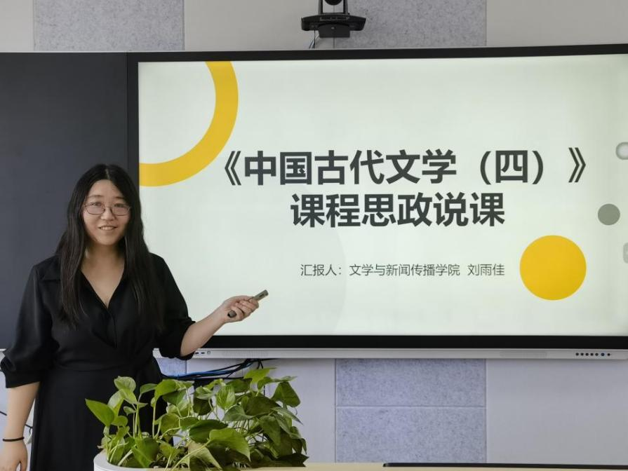 会议伊始,刘建新就本次活动的意义与活动流程进行了简要说明。随后,贺敏老师分享课堂“新媒体产品竞争分析”的教学流程,介绍了“竞品类型、竞品分析时机及实例”的教学创新;刘雨佳老师对《中国古代文学(四)》课程进行了规范的思政说课,并进行了精彩的教学展示;侯承相老师从8个方面,介绍了将课程思政一以贯之的教学设计,说课环节就《圆圆曲》中的家国情怀进行了教学展示;黄婧老师从五个方面进行了“现代汉语”课程思政教学设计,并结合课程思政设计思路,在说课展示环节,充分体现了扎实的教学功底,凸显了课程思政“见微知著”主题。