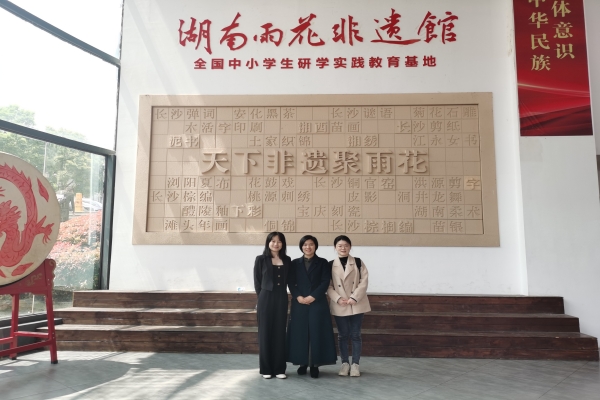 4月3日下午,文新学院党委副书记刘莎、中文系副主任黄婧一行走进湖南雨花非遗馆开展“访企拓岗”行动,就人才培养、创新创业、实践实习、就业招聘等多个方面进行调研交流,雨花非遗馆副馆长刘俊熠出席。