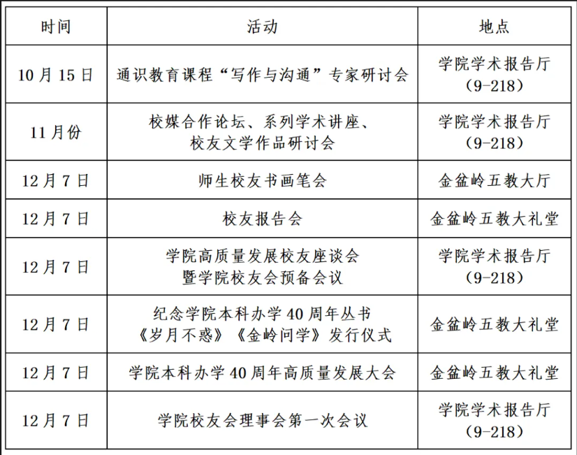 学院定于12月7日举办本科办学40周年高质量发展大会及相关活动,向长期以来关心和支持学院建设发展的各级领导、历届校友和社会各界朋友表达衷心的感谢和崇高的敬意!