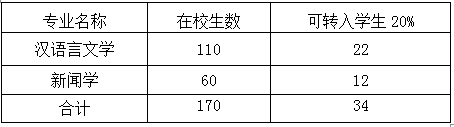 1.申请转入本系汉语言文学专业和新闻学专业的学生均须参加综合考核,考核分笔试和面试,权重比例分别为60%:40%,接受原则按转专业学生综合考核成绩×50%与该生在校已获课程成绩平均绩点×50%之和的总分,从高到低排序,依次择优接收。