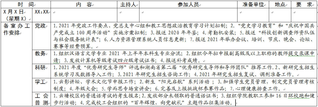 文新学院2020-2021学年度第二学期第三周工作安排表