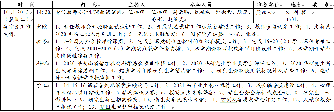 文新系2020-2021学年度第一学期第七周工作安排表