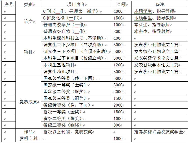 (三) 设立“文学与新闻学系学生优秀科研成果奖”,奖励优秀的学生科研成果,并奖励指导学生开展课外科技活动成绩突出的教师。凡获奖成果均发给获奖证书,并给予一定的物质奖励。