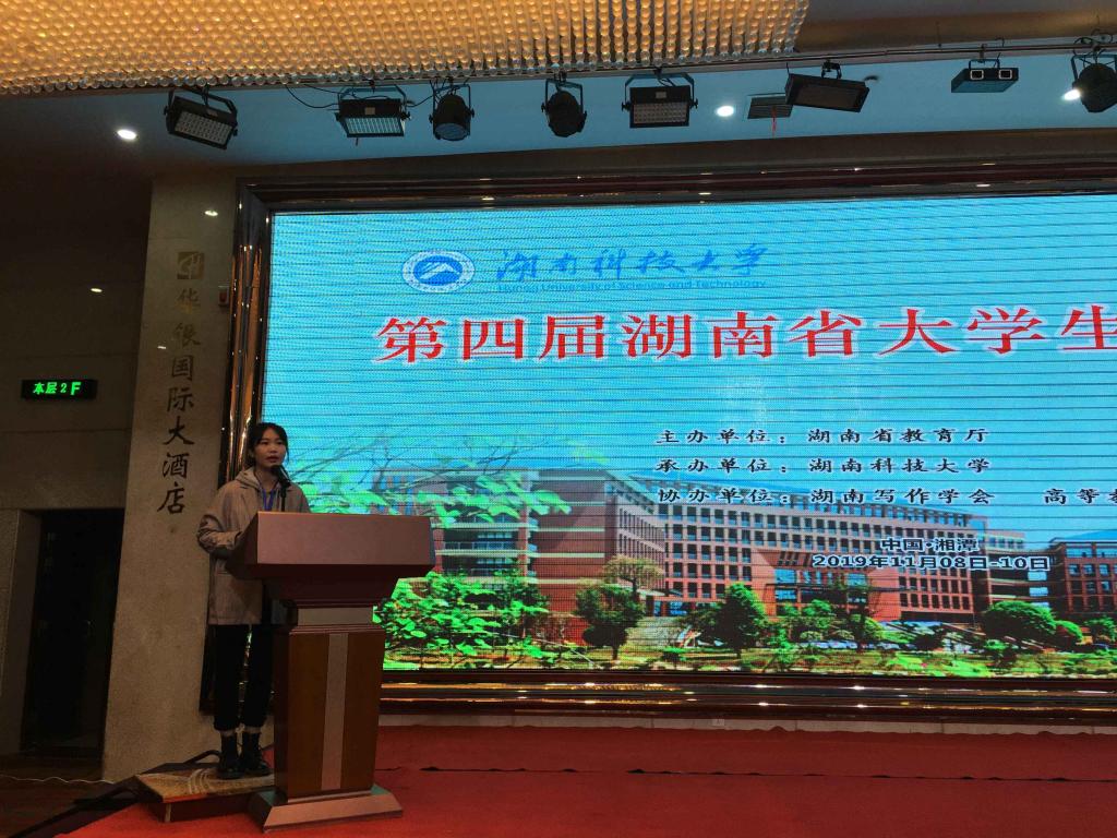 11月10日上午,为期两天的第四届湖南省大学生写作竞赛在湖南科技大学圆满落幕。我院汉语言文学专业王天怡同学斩获一等奖,肖非辉,石小萌,胡丹宁三位同学获得三等奖。云顶国际vip8866再获组织奖。