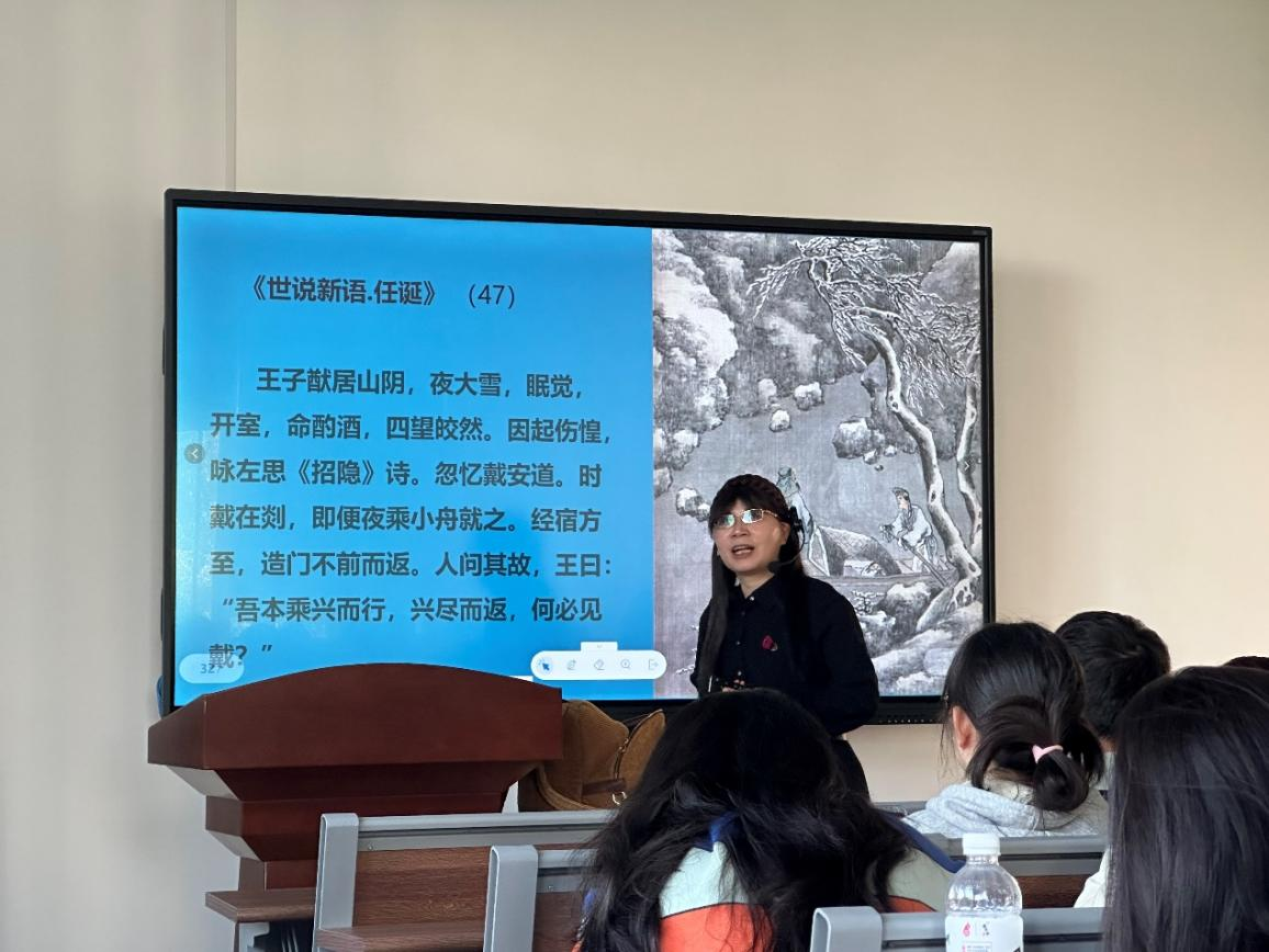 宁淑华教授以“魏晋风流”这一经典文学现象作始,向同学们介绍了其内涵,并自然过渡到率性之美这一方面。在正式进入讲解之前,宁淑华教授向大家推荐了可供研究参考的《世说新语》的各个版本。