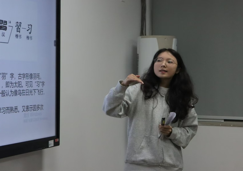 接着,中文班贺宇怡、张煜佳、段玥、谷艳怡、曹雨晴五名同学进行汇报分享。五名同学都针对《论语译注》这本主题书籍,拓展汇报了不同作品中的关键字词辨析,如《为政》中的“殆”字辨析、“游于艺”辨析、“孝”概念辨析等。
