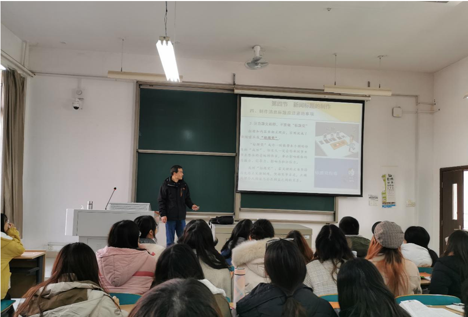 12月3号,新闻系安建文老师在18级新闻卓越班“新闻编辑”课上,注重用马克思主义新闻观,把思想政治教育融合进了课堂教学中。这是新闻系教师们重视日常课程思政教学工作的一个缩影。